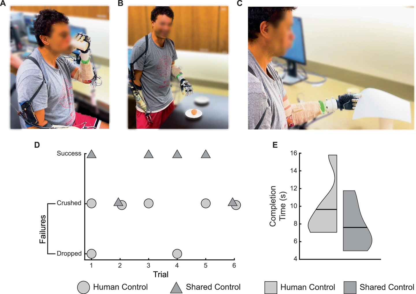 在针对易碎物品(如纸杯、鸡蛋)的操控测试中,该系统的表现令人印象深刻。未开启 AI 辅助时,传统仿生手患者完成任务的成功率仅为 10% 至 20%。