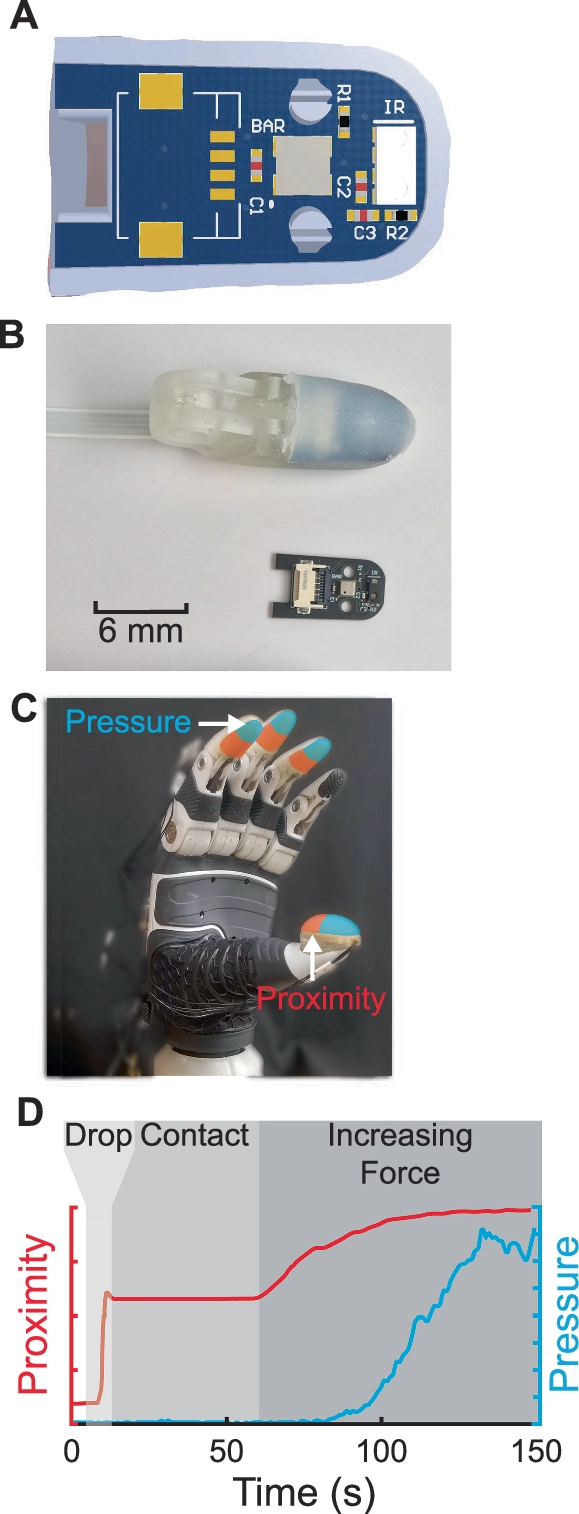 研究团队为了重建这种直觉体验,开发了一套 AI 辅助系统。Marshall Trout 等研究人员改造了商用仿生手,用包裹硅胶的压力和接近传感器替换了原有指尖,这些传感器能感知物体距离并精确测量抓握所需的力度。