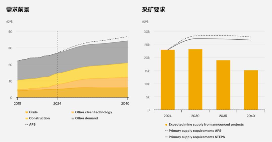 国际铜业研究组织(ICSG)的数据显示,2025 年全球处于建设阶段的大型铜矿仅有 12 个,预计到 2030 年新增产能约 300 万吨,而同期全球铜需求的增量预计达 800 万吨,新增产能仅能满足 37.5% 的需求增量。这意味着如果当前不加速铜矿勘探与建设,到 2030 年代,全球铜市场将面临每年 500 万吨以上的供需缺口,相当于 2025 年全球铜总产量的 20%,缺口规模将随着需求增长进一步扩大。