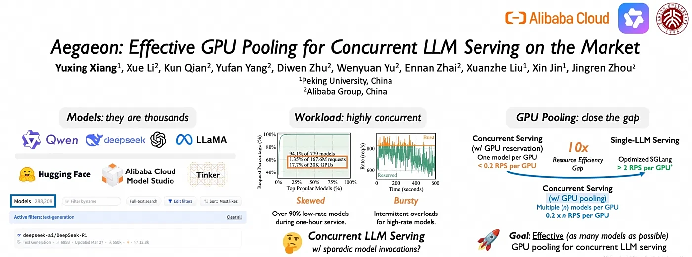 IT之家 10 月 18 日消息,据《南华早报》今日报道,在韩国首尔举办的第 31 届操作系统原理研讨会(SOSP)上,阿里云发布的“Aegaeon”计算池化解决方案研究成果成功入选,该方案旨在解决 AI 模型服务中普遍存在的 GPU 资源浪费问题。
