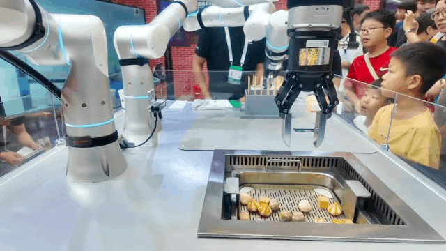 在“手工冰淇淋店”,单台机器人可自主完成开关冰柜、舀挖冰淇淋、放置成品及清洗工具等一系列连续操作,体现出系统在复杂流程中的连贯执行水平。