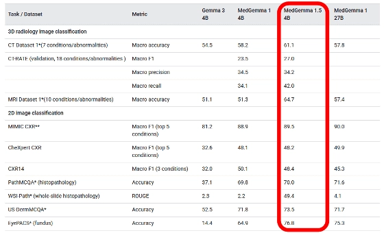 MedGemma 系列前代产品已支持处理文本及胸部 X 光片、病理组织图像等影像数据,而 MedGemma 1.5 4B 进一步升级,可兼容计算机断层扫描(CT)、磁共振成像(MRI)等三维数据。