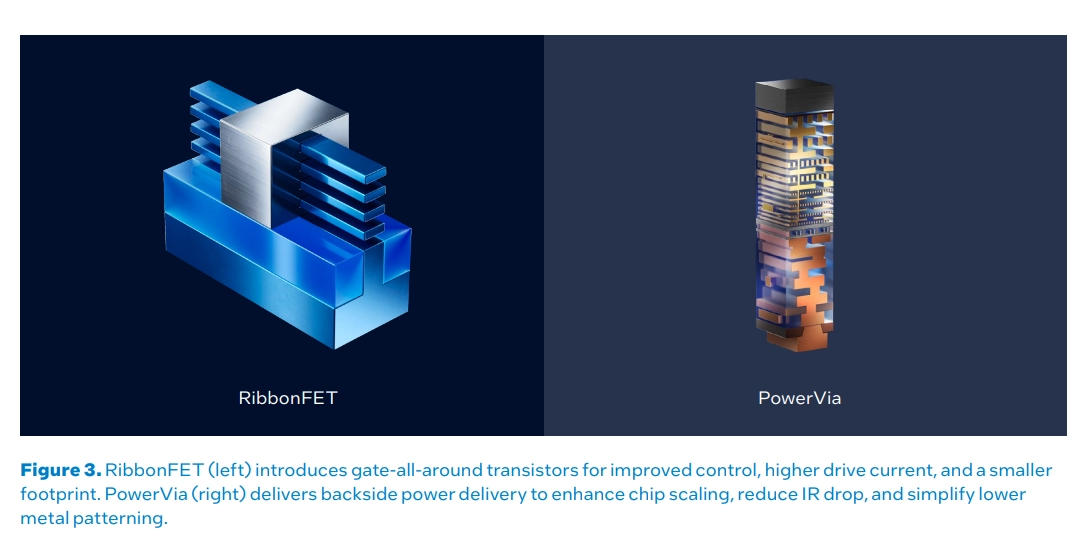 在核心工艺上,该测试平台的核心逻辑单元采用了英特尔最先进的 18A 工艺,集成了 RibbonFET 全环绕栅极晶体管和 PowerVia 背面供电技术。