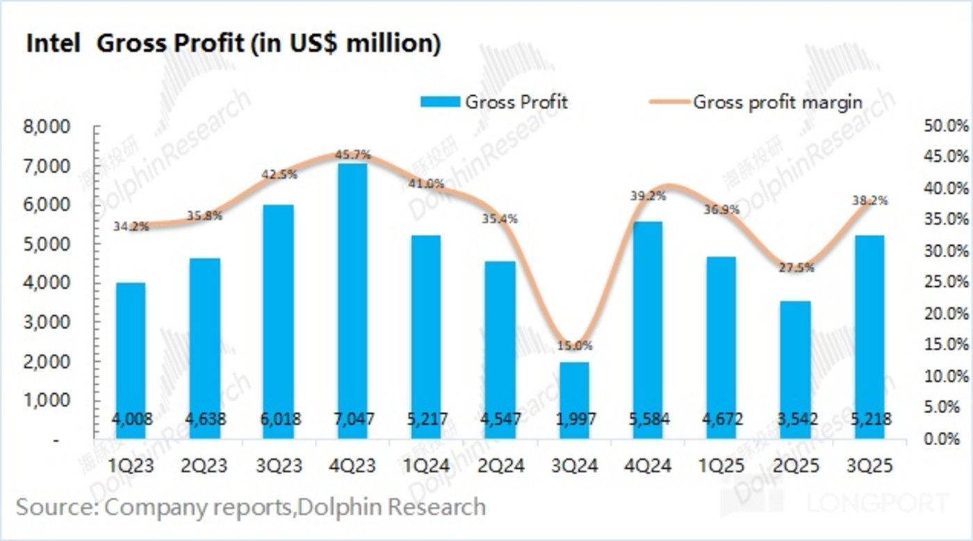 1.2 毛利及毛利率:英特尔在 2025 年第三季度实现毛利 52.2 亿美元,同比/环比都有明显增长。在收入小幅增长的情况下,主要是受毛利率提升的带动。