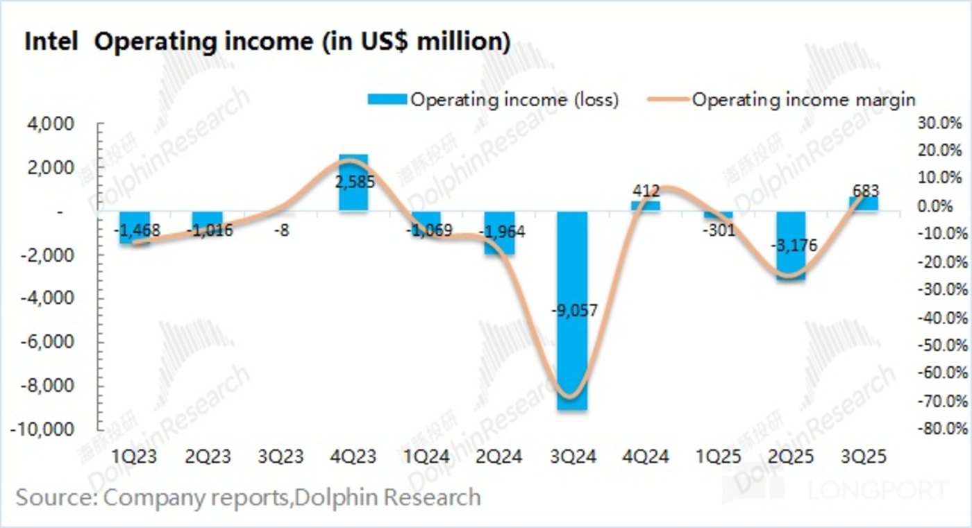 英特尔于北京时间 2025 年 10 月 24 日上午的美股盘后发布了 2025 年第三季度财报(截止 2025 年 9 月),要点如下: