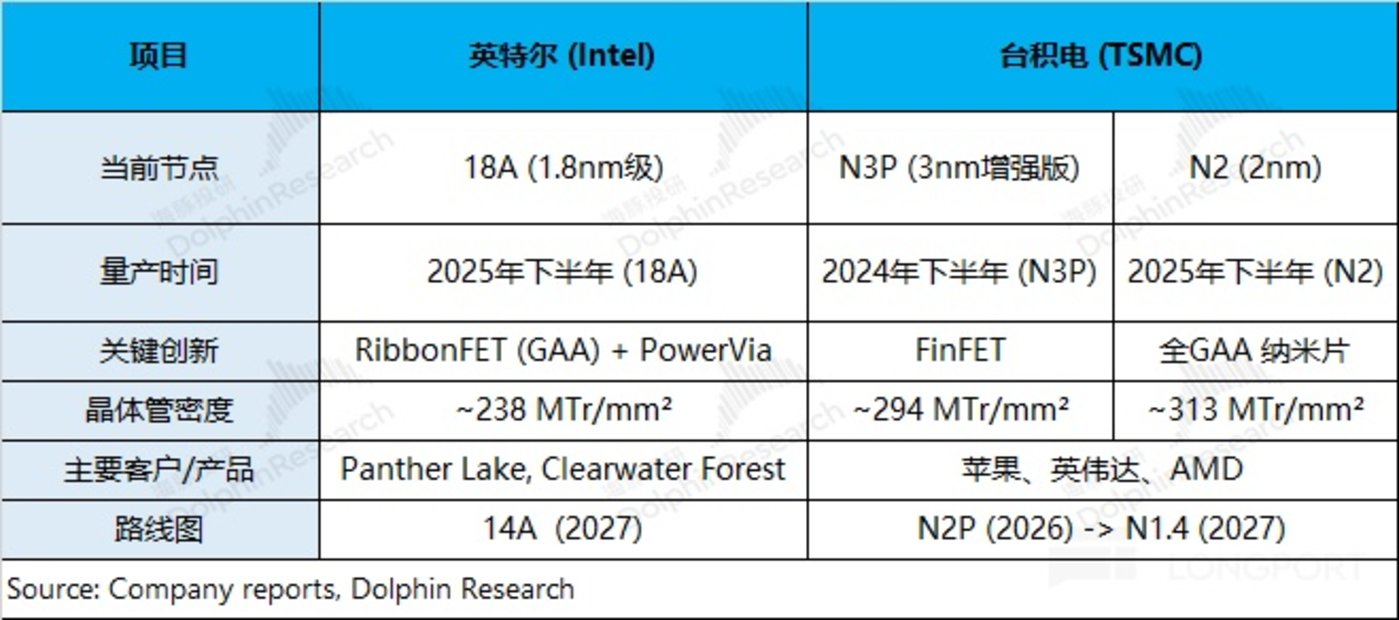 当前 18A 工艺已经开始量产,优先使用在公司自有的 Panther Lake 产品,这是个不错的信号。虽然 18A 工艺在晶体管密度等方面仍落后于台积电,但新制程的量产还是能给市场传达出追赶台积电的信心。