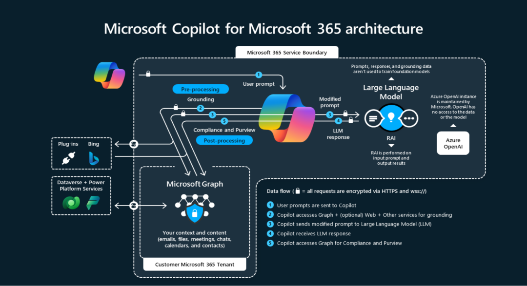 这个Graph索引了企业所有的私有数据(构成了“现实理解纵深”),并将其与Copilot的“高智能水平”相结合。当员工提问(如“总结A项目上周进展并起草周报”)时,Copilot能实时检索邮件、聊天和文档,生成精准报告。这是任何“公共”AI助手或传统内部搜索都无法比拟的。