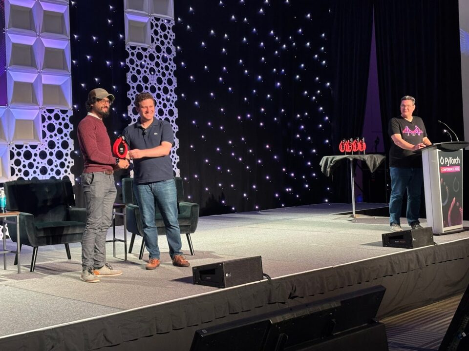Runhouse,一家优化模型部署和编排的AI基础设施初创公司,荣获2025年PyTorch初创企业展示奖。社区选择奖授予了CuraVoice,其首席执行官Sakhi Patel、首席技术官Shrey Modi和顾问Rahul Vishwakarma代表团队领奖。