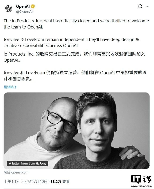 IT之家 12 月 5 日消息,科技媒体 9to5Mac 今天(12 月 5 日)发布博文,报道称 OpenAI 与前苹果设计总监 Jony Ive 的硬件合作项目遭遇法律挫折,联手打造的 AI 硬件项目在品牌命名上触礁。
