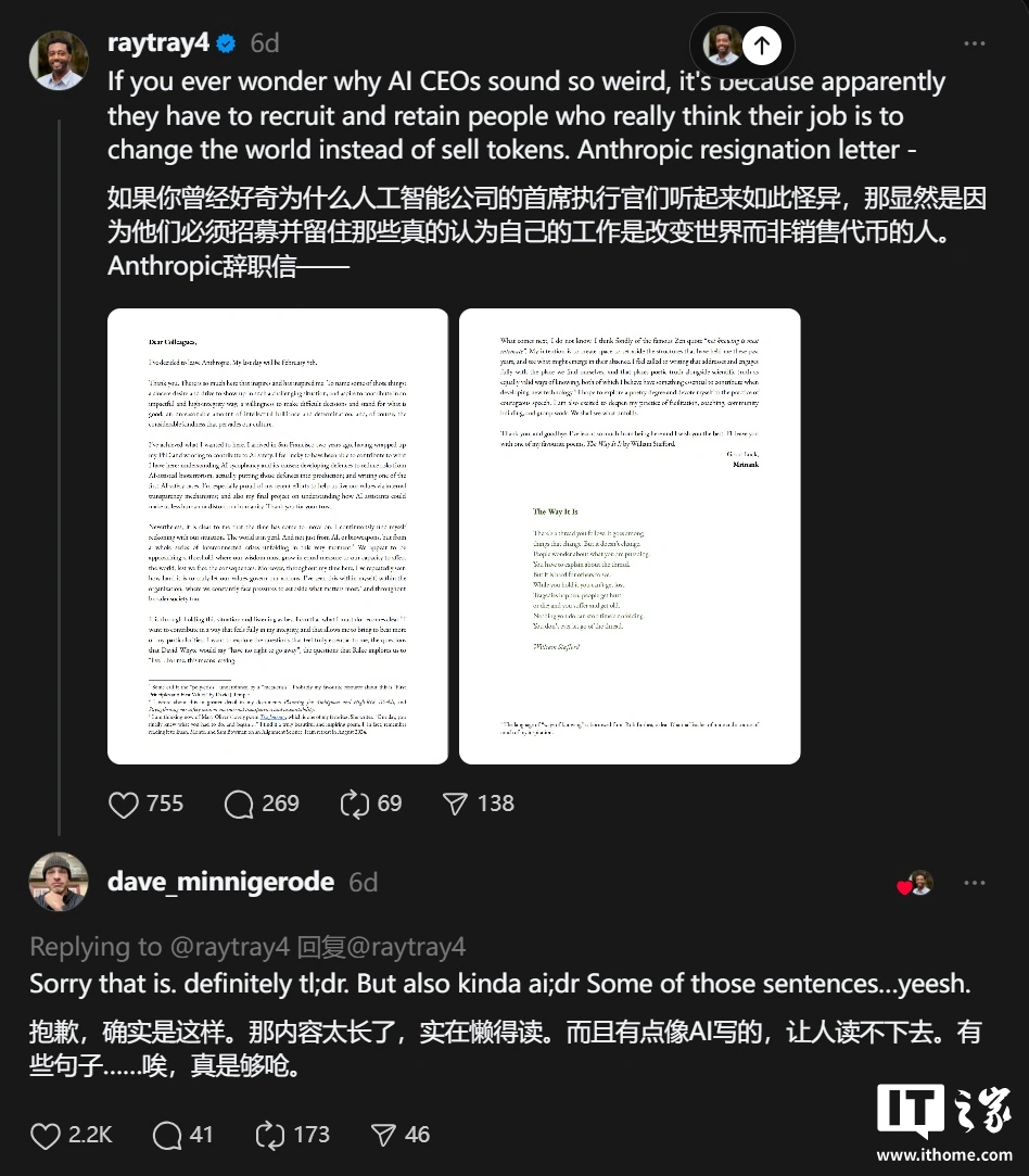 IT之家 2 月 17 日消息,据 Futurism 报道,现在互联网上很多 AI 生成的劣质内容,有网友提出了一个新词,专门用来点名 AI 垃圾内容,好让别人别浪费时间,或者单纯调侃那些兜售这些内容的人:AI;DR,或 ai;dr,是 AI, didn't read(AI 生成,懒得看)的缩写。