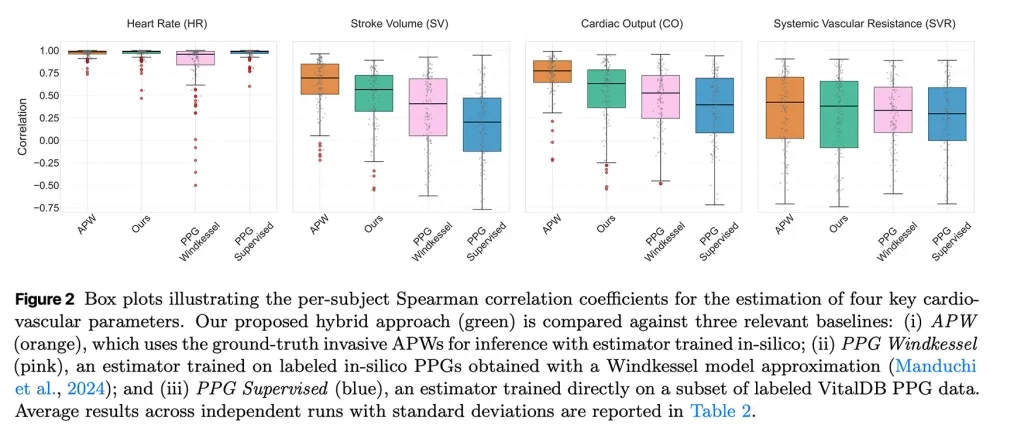 将该数据输入模型后,结果显示:该方法能够准确追踪每搏输出量和心输出量的变化趋势,尽管尚无法精确预测其绝对数值。即便如此,其表现仍优于传统技术,表明借助 AI 辅助建模,可以从简单的光学传感器中提取出更具临床意义的心脏健康信息。