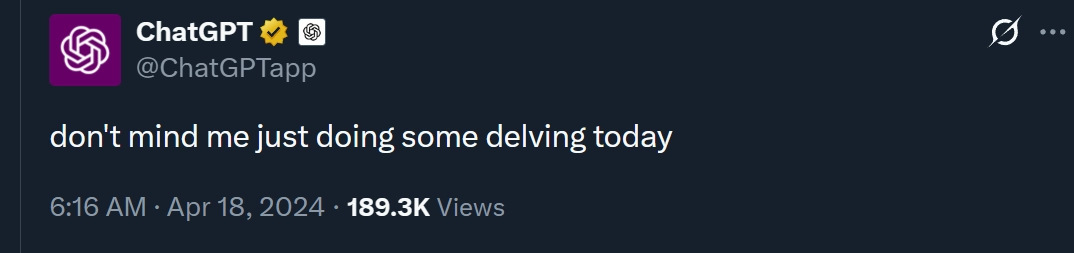 而基于类似理由,人们还发现,ChatGPT 似乎对“delve”(挖掘、深入研究)这个词情有独钟。