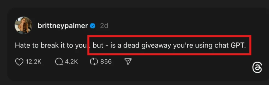 emmm…… 一想到自己从小接受的教育都是“文章必须像一座完美的大厦”、“你必须展现丰富的词汇量”,而现在却被误认为出自 AI,这位朋友实在忍不住发出怒吼:
