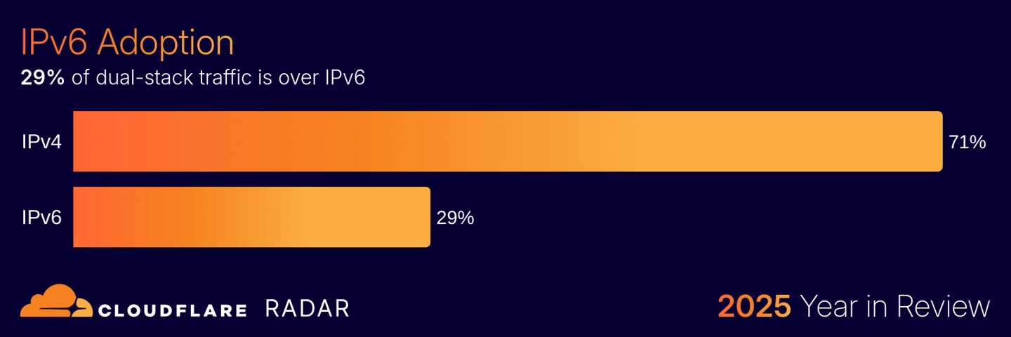 IPv6 流量占比微增至 29%,印度以 67% 采用率领跑全球