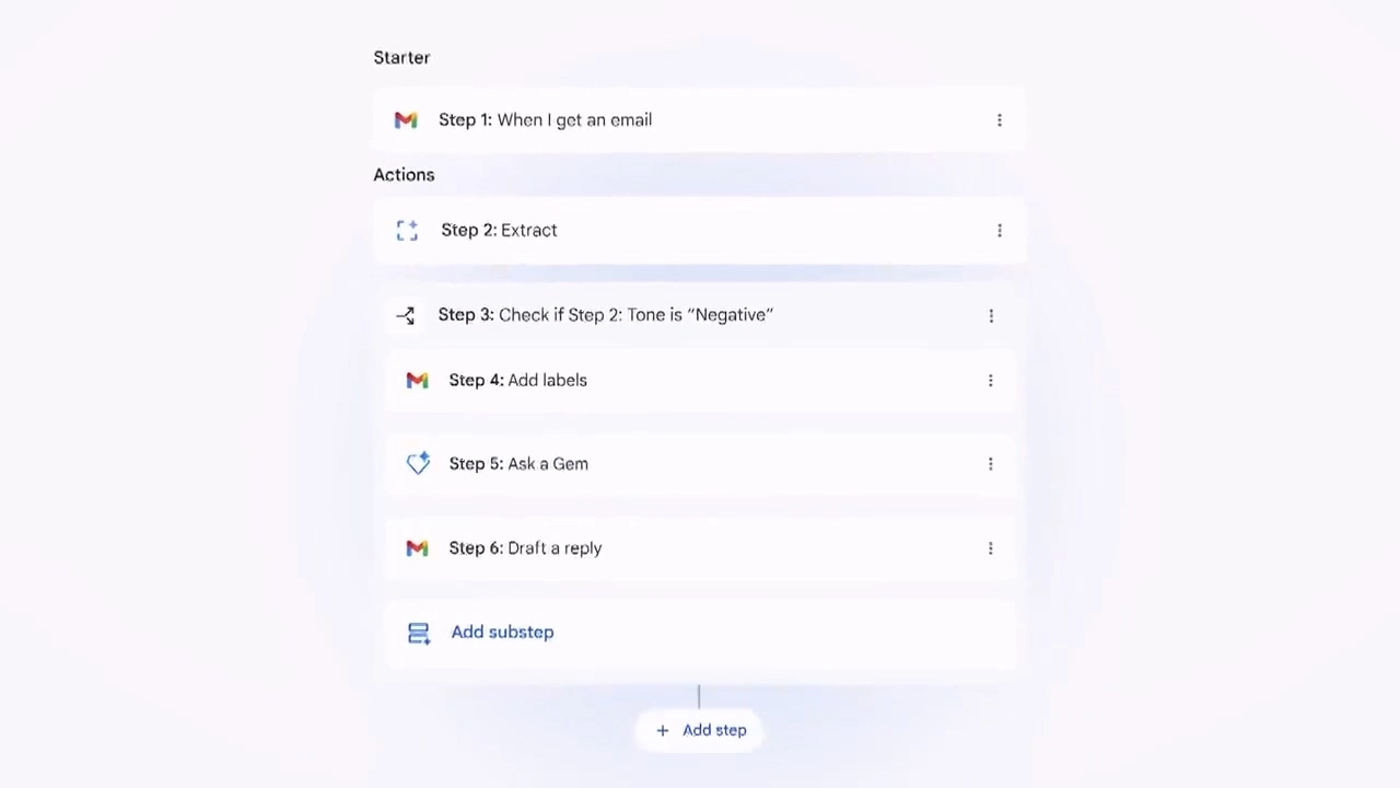 Workspace Studio 的核心优势在于其“所说即所得”的创建方式。用户可以向系统下达指令,例如“创建一个智能体,当收到包含特定关键词的邮件时通知我”,Gemini 便会立即执行并构建该工具。