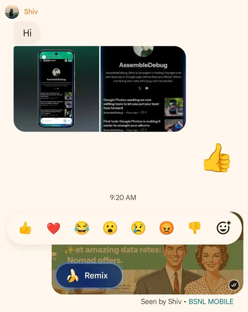 IT之家 11 月 5 日消息,科技媒体 Android Authority 昨日(11 月 4 日)发布博文,报道称谷歌正酝酿升级即时通讯应用 Google Messages,集成“Nano Banana”先进图像编辑模型,推出名为“Remix”的全新 AI 图片编辑功能。