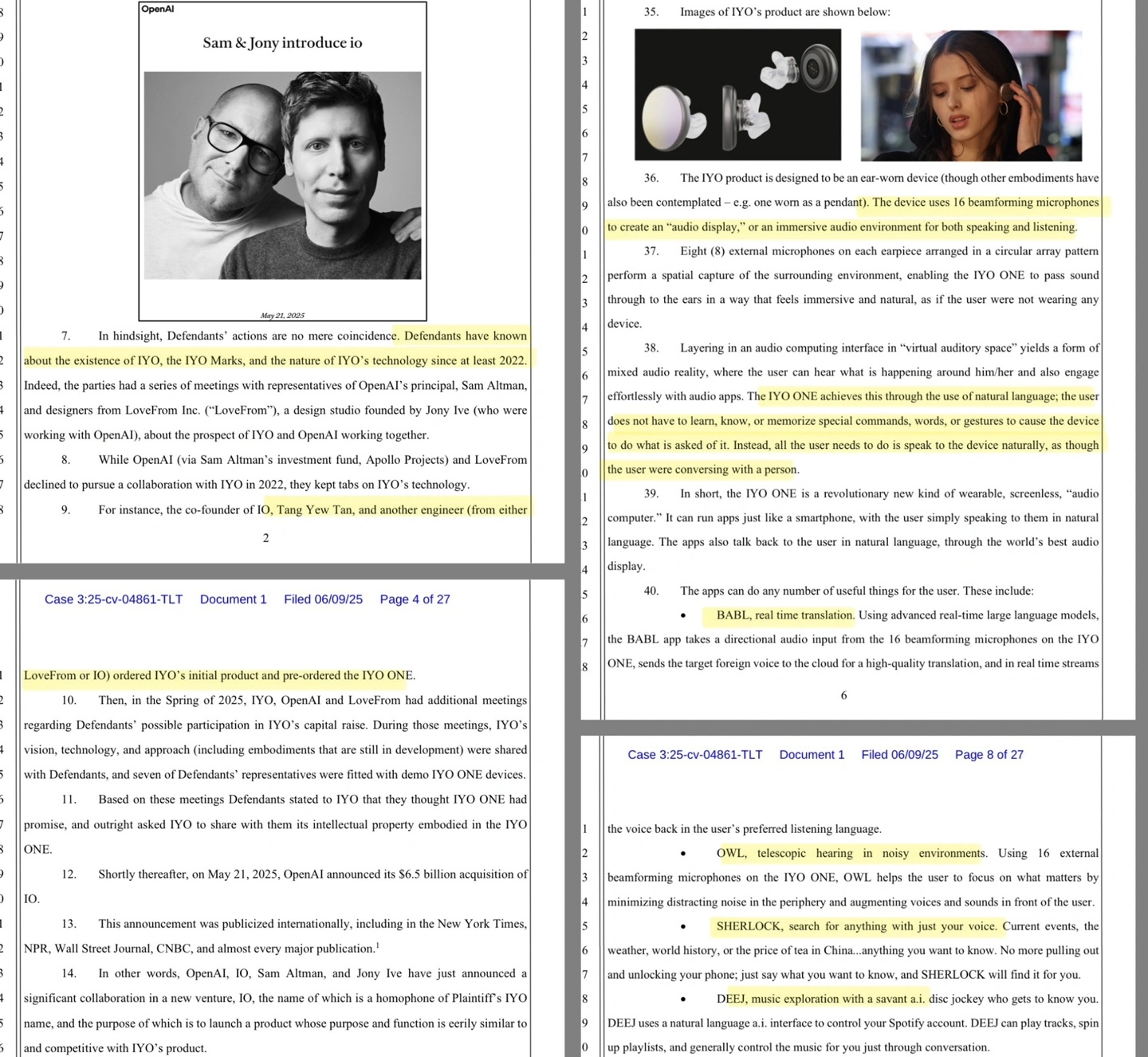 然而,当 OpenAI 随后宣布收购 Jony Ive 的“io”公司并准备进入该市场时,iyO 立即提起了商标侵权诉讼,指控 OpenAI 试图利用相似的名称和产品抢占市场。