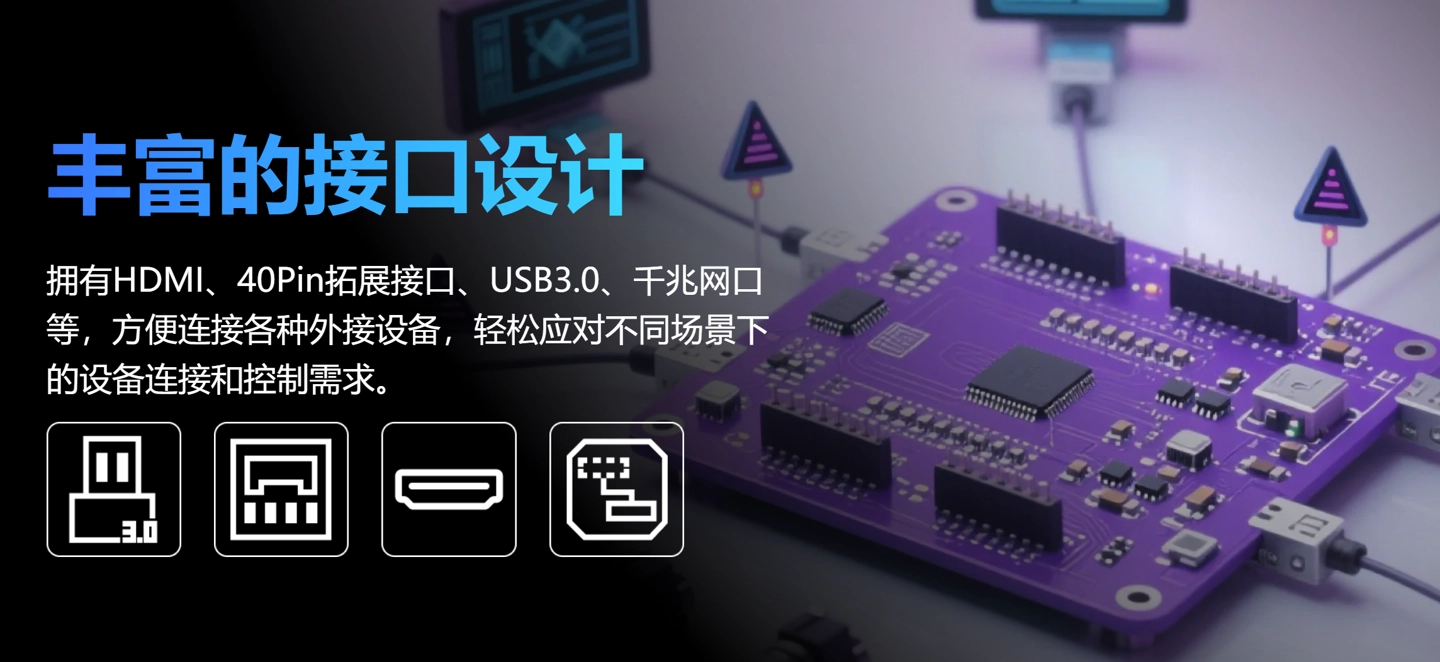 网络连接方面,该机配备了两个千兆以太网口和 WiFi 模块。IT之家援引博文介绍,作为一款开发板,它保留了标准的 40-pin GPIO 接口,方便开发者连接电机、传感器或报警灯等外部设备,同时也支持安装风扇以保证散热。