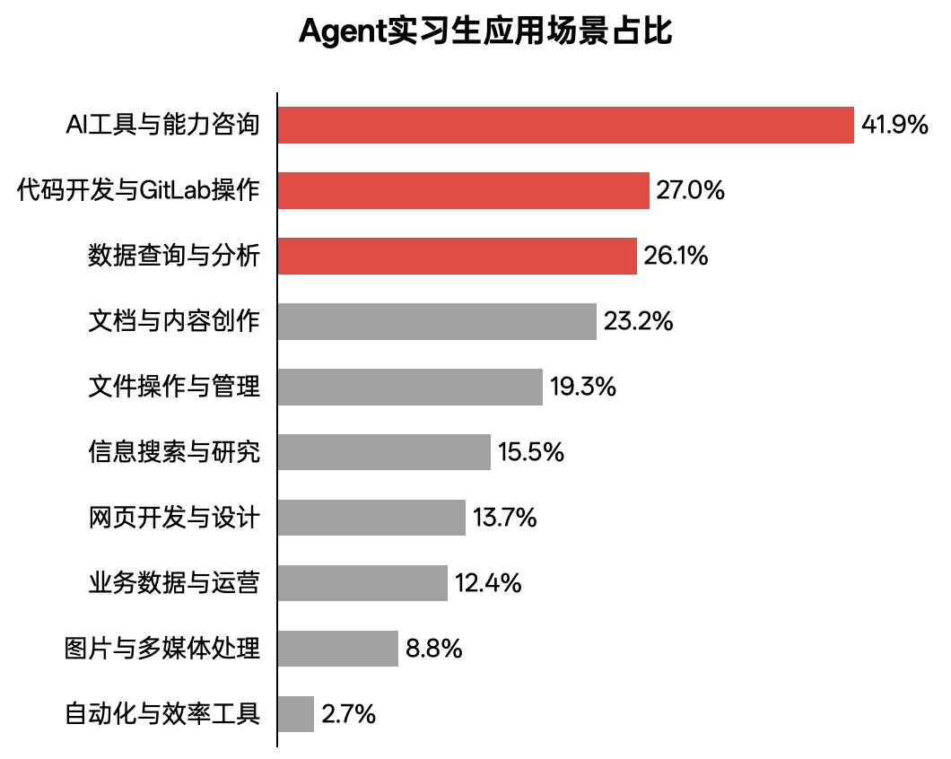 走在技术前沿的大模型公司更喜欢用 AI,通用 AI 科技公司 MiniMax 内部就有一批被称为“Agent 实习生”的智能体,它们能接入公司的本地文档、邮件、日程、代码库,甚至能读代码、改代码、提合并请求、监控系统告警。